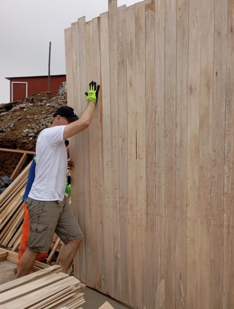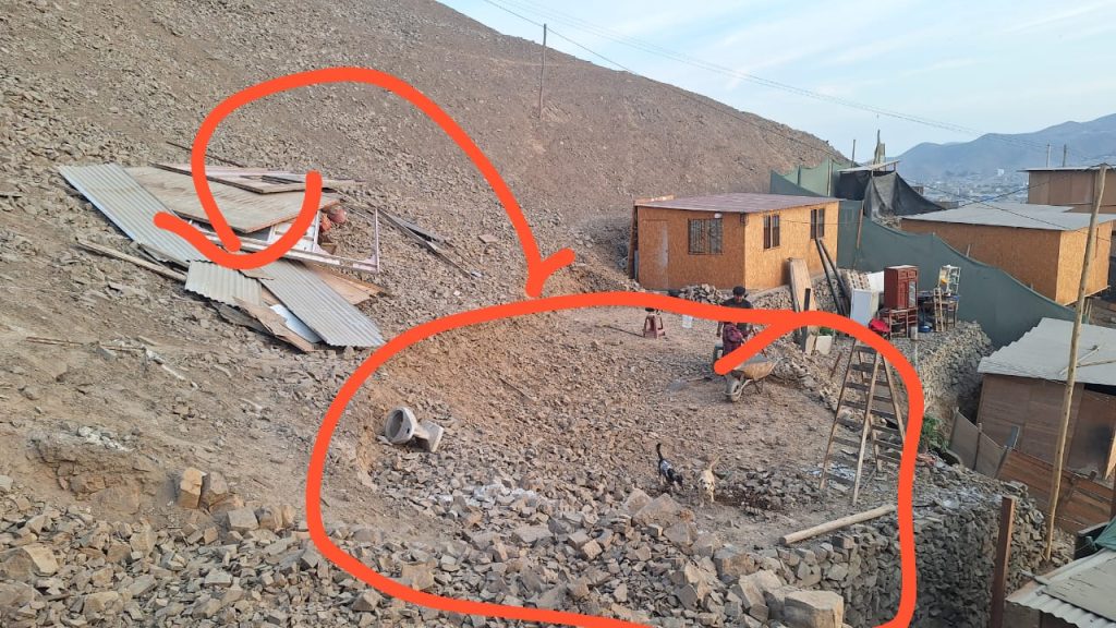 In June 2025 we arranged to move the occupants of two houses and a comedor out to temporary accommodation with neighbours, laid the concrete floors in advance of the arrival of the group of volunteers so that they could then advance with the walls and the roofs.