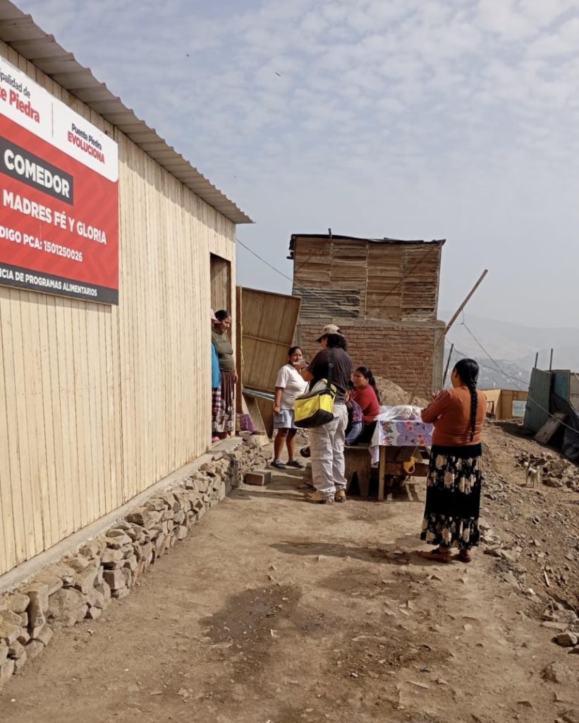 We build simple wooden houses on stable bases and with sound roofs to replace broken down shelters that already exist, for individuals or families in particular need. And we are regularly in touch with local groups (mainly of women) who organise community activities and Comedores (shared dining rooms) and Ollas Comunes* (shared ‘cooking pots’) where for a minimum charge people in the greatest need can share a meal … in the latter case* adding any foodstuffs they have to the shared cooking pot.